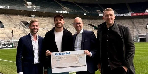 Wir freuen uns sehr über die Spende der Gladbacher Bank in Höhe von 5000€. Wir konnten den Scheck am Rande unseres Lernortes, dem BORUSSIA_PARK, von Ben Welters, Bereichsleiter Vertriebs- und Produktmanagement, und Florian Thomas, Bereichsleiter Firmenkundenbetreuung, entgegennehmen.